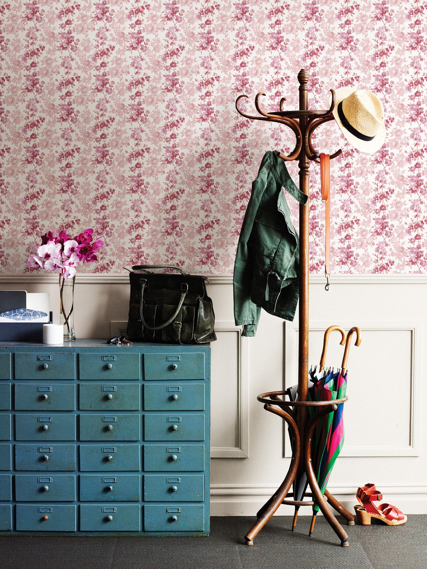 טפט פרחים לאורך- ורוד